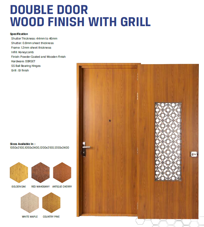 JSW Steel Doors offer the perfect combination of security, durability, and elegant design. Made from premium galvanized steel and finished with advanced woodgrain textures or modern patterns, these doors are weather-resistant, termite-proof, and maintenance-free. Ideal for both residential and commercial use, JSW doors ensure long-lasting performance with a premium finish.